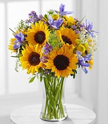 The perfect sunflower in a clear base. Bring a sunny and cheerful touch to any room, and brighten up your day with the timeless grace of this flower. Made to shine, you'll love the radiant touch this stunning piece.