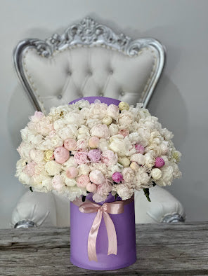 Featuring a multitude of hues, including striking shades of purple. Revel in the diversity of colors that our box of peonies offers.