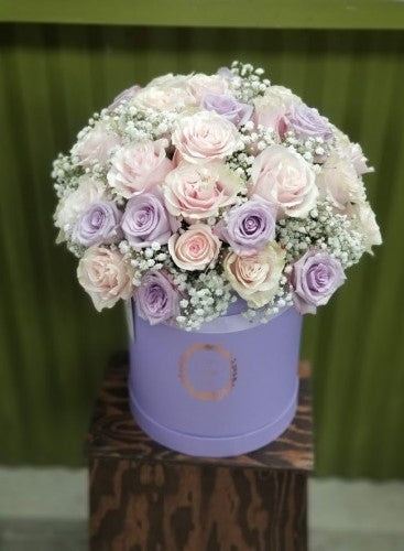A stunning arrangement of purple and light pink roses, exuding elegance. Hand-picked and curated for those who appreciate beauty and sophistication. Perfect for any occasion. Order now and elevate your floral game.