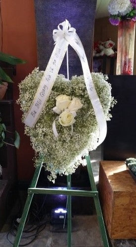 Expertly crafted white heart adorned with a delicate white roses. Sure to capture hearts and bring a sense of purity and grace.