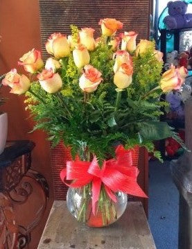 Yellow Roses with Red Tip. These elegant roses feature a striking red tip, creating a stunning contrast against the vibrant yellow petals. Arranged in a beautiful clear vase, this bouquet is the perfect.